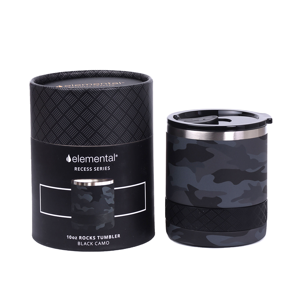 The Recess 10 oz. Rocks Tumbler with comfort grip gives you a sleek new way to enjoy your favorite beverages in style and with confidence. Featuring no slip technology both on the bottom and side of the cup, dropping your favorite cup has become a thing of the past. TrueBarrier™ Technology using 18/8 food grade stainless steel with copper lined double wall insulation keeps your drinks at the perfect temperature without watering them down. This insulated cup keeps your cold drinks cold for 18 hours and hot drinks hot for 6 hours. The shatter-proof Tritan lid is provided with slider to keep your drink form splashing around when on the move. No more spills while getting to your seat and no more accidental breaking!